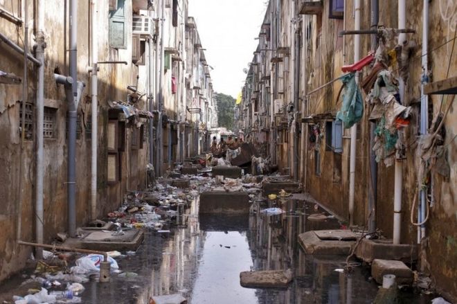 Garbage and sludge have collected on the streets and sewage has entered homes, damaging properties.