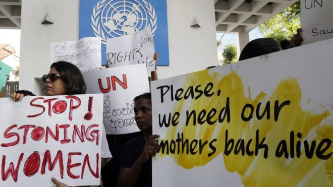 Saudi Arabia's decision to stone the woman was condemned in Sri Lanka, where protests were held.